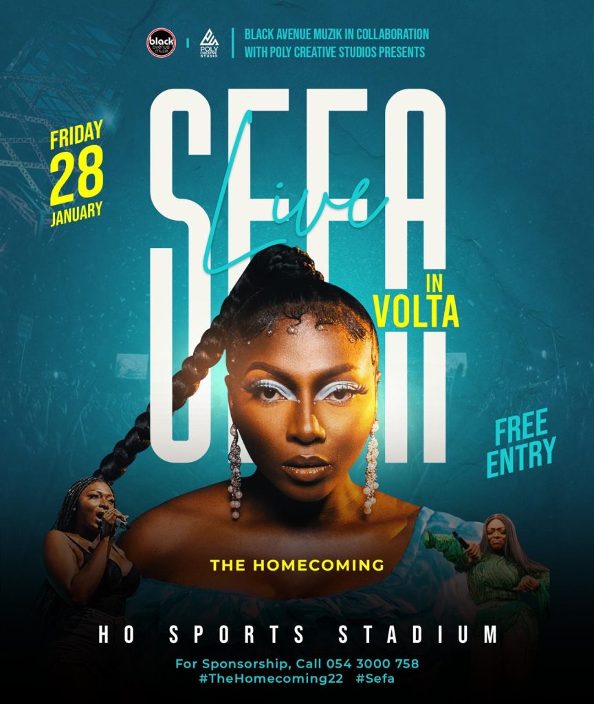 Sefa has performed and supported a lot artists both Ghana & international at your event and concerts, this time around decided to host her own show in her hometown Volta Region, Ho Sports Stadium on 28th January 2022, 7pm sharp. Sefa has tall list of artist supporting her likes of Dblack, Mr. Drew, Sister Afia, Kofi Jamar, Bisa Kdei, Edem, Camidoh, Kofi Mole etc.